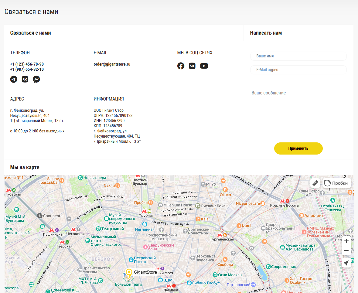 Страница контактов: