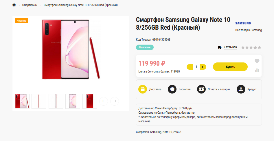 Страница товара: