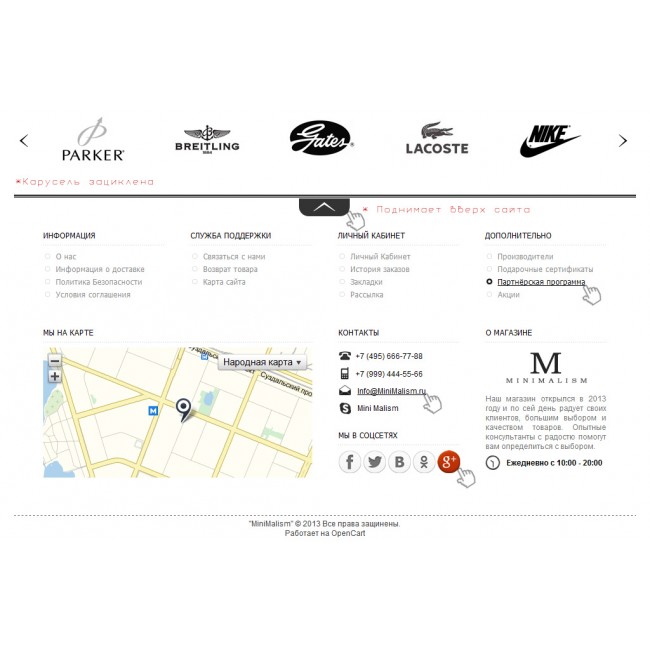4) Ярлыки-ссылки перебрасывающие на страницы магазина в соц.сетях.