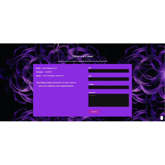 - Обработка формы контактов: Позволяет отправлять форму обратной связи с проверками на стороне сервера и уведомлениями об успехе или ошибке.