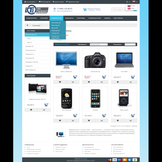 Однако, спектр использования явно не ограничивается этим, вполне удачно вписываются товары электроники, что хорошо видно на демо-шаблоне. В части дизайне его можно вполне назвать универсальным. Преимуществом данного шаблона является максимальная приближенность к логике стандартного шаблона, не требует замены файлов, максимально быстро установится на любой, даже только что установленный Opencart oStore.
