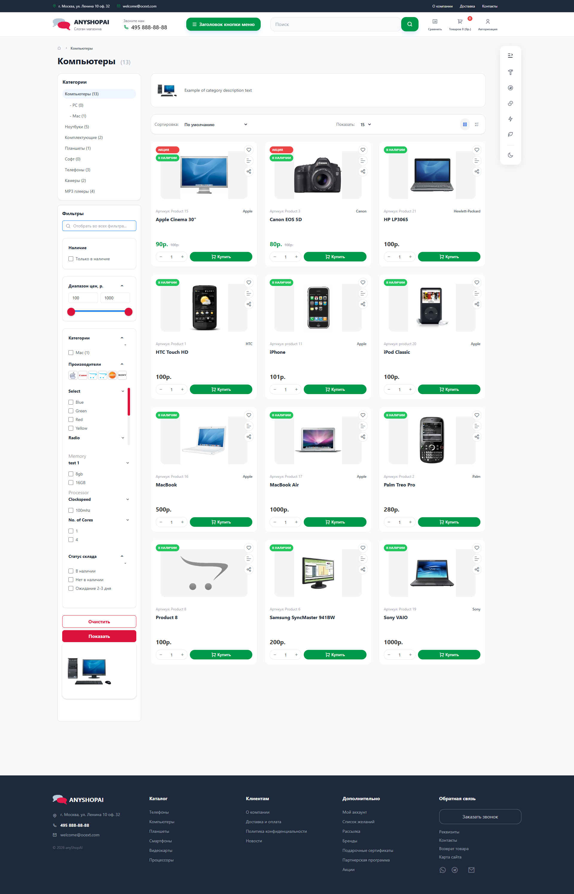 Мощная система фильтрации товаров (опционально, отдельный модуль,