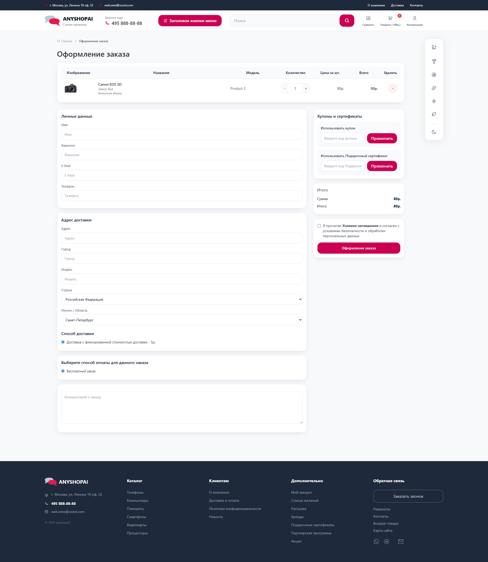 AnyShopAI — профессиональная тема для OpenCart 3.x с современным дизайном и мощным функционалом. Тема полностью адаптивна, поддерживает темный режим и включает множество уникальных возможностей для повышения конверсии и удобства работы с магазином.
