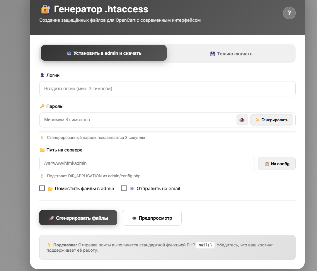 Генератор защиты для админки OpenCart.